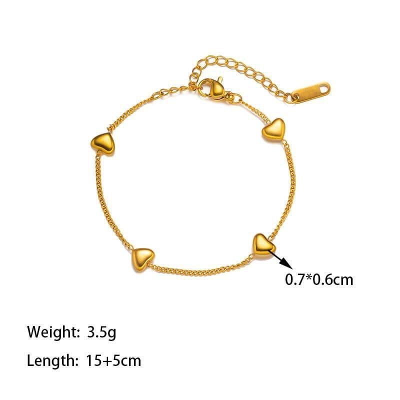 18K Gold Non-Tarnish Petite Heart Bracelet 18k Gold Plating S.Steel Chain Length (inch): 6