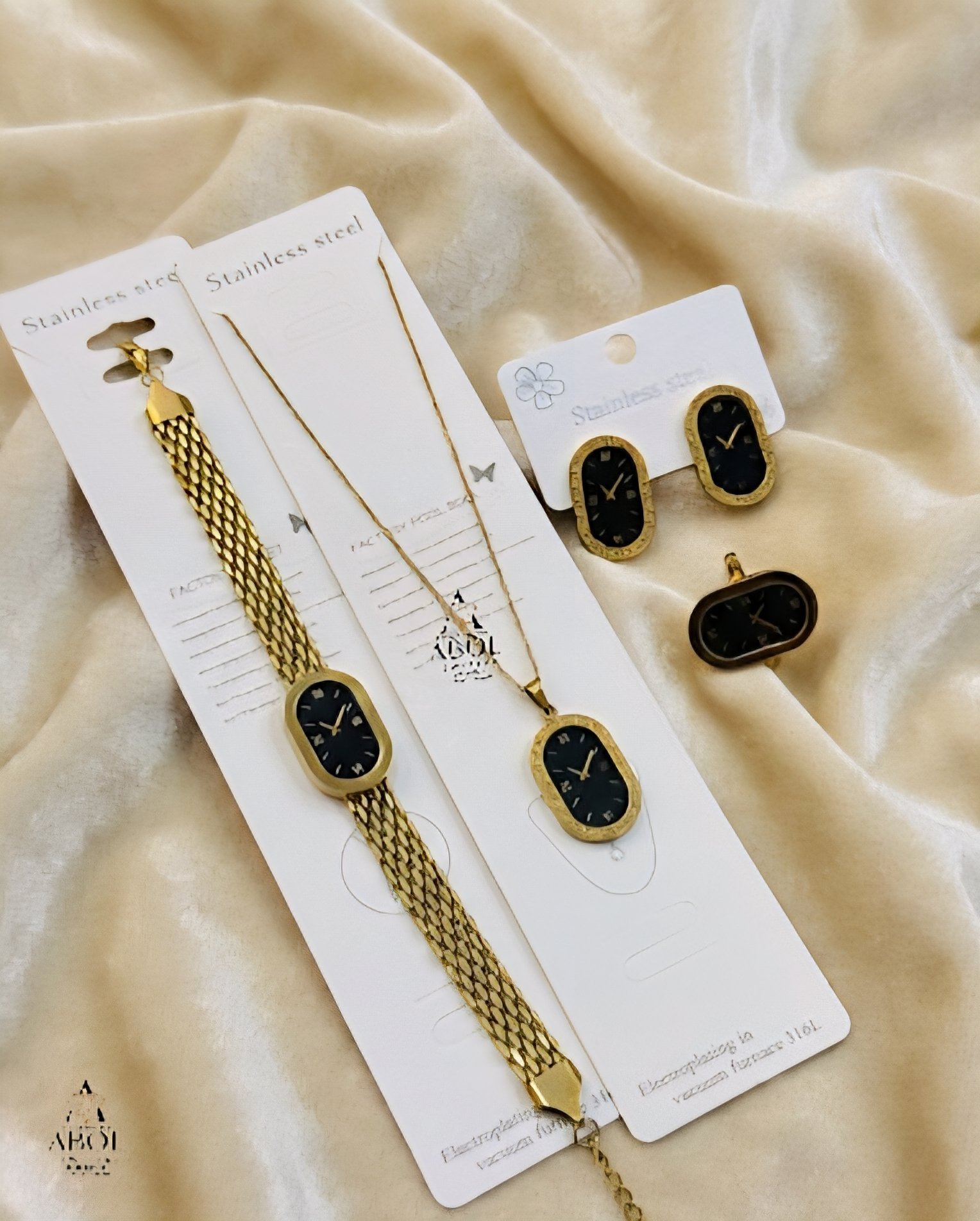 Crafted with high-quality stainless steel and electroplated in a vacuum furnace (likely 316L, as indicated on the packaging), this collection is designed for durability and a brilliant, long-lasting finish.